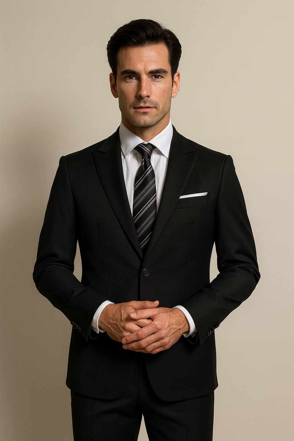 RYW-RBUS0031 Elevate your presence at any formal event with this 3 piece black business suit designed for...