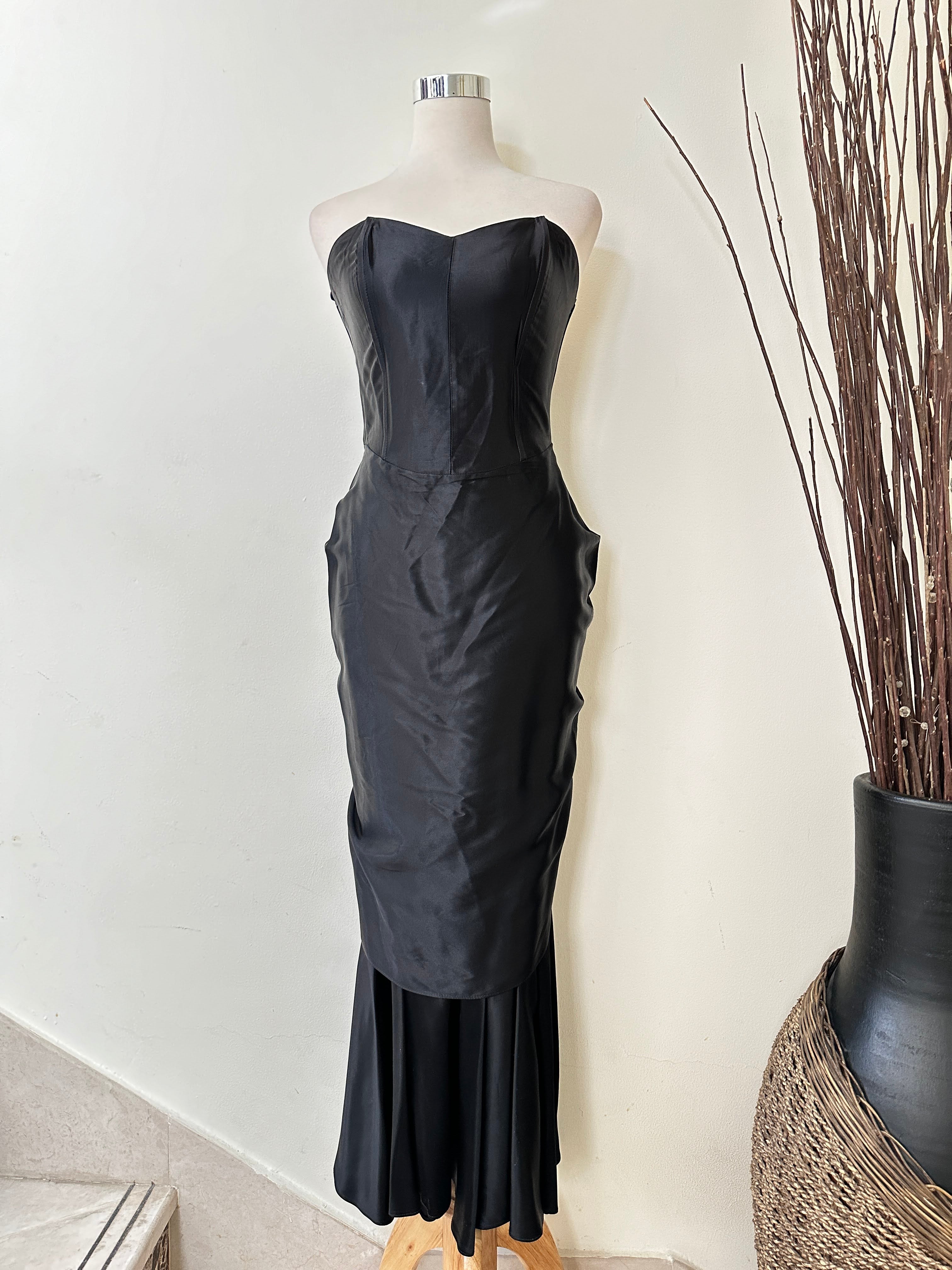 Elevate your style with our Black Dress RYWEMZ! This elegant tube dress, made with luxurious satin fabric, will surely turn heads at any event. Its sleek and figure-flattering design will make you feel confident and glamorous. Upgrade your wardrobe today!