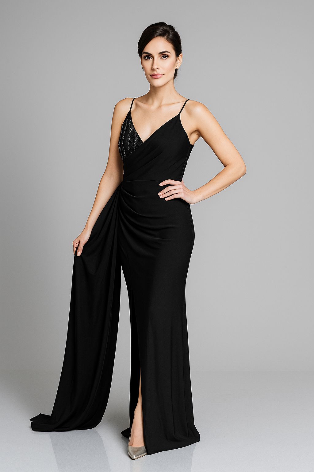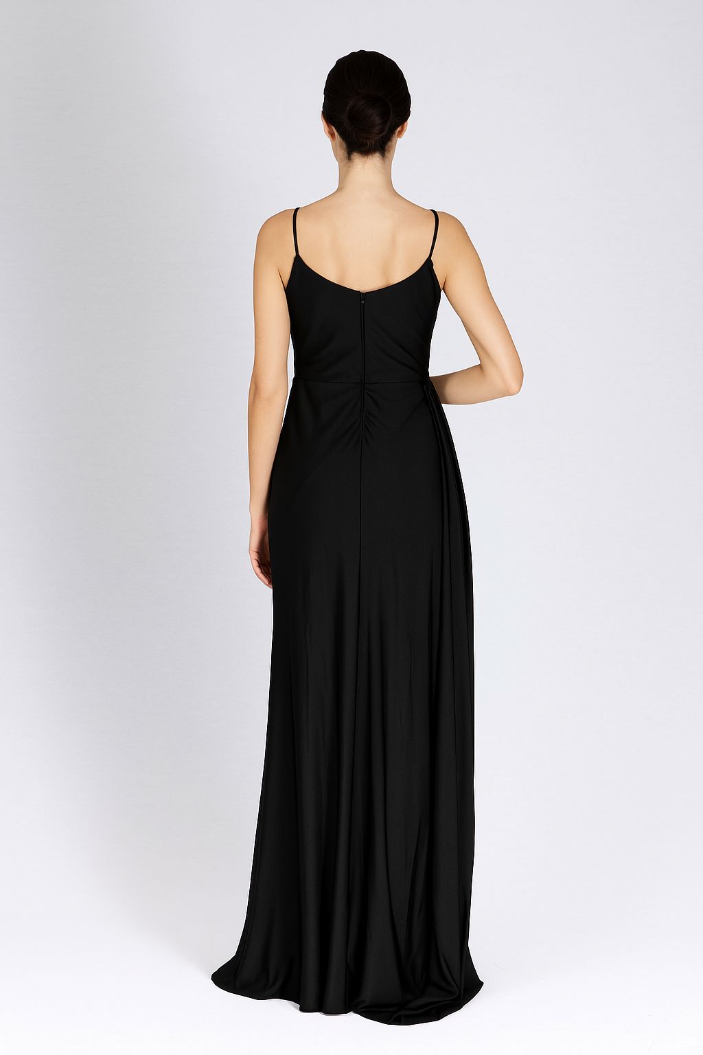 Look no further for the perfect dress. The Black Slit Dress will make you stand out with its unique silk satin fabric and side train. Feel confident and look stunning as the long slit design of the dress enhances your curves. Find your style and make a statement with this one-of-a-kind dress!