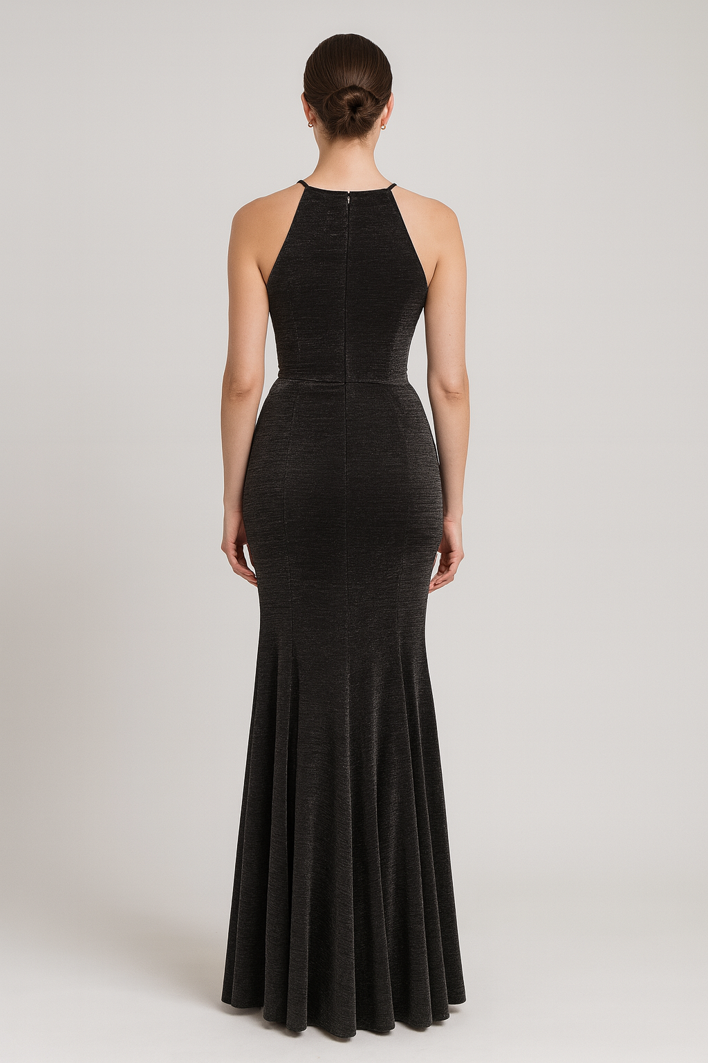 Look your best dressed in this Slit Long Dress. Featuring a stunning shinney black grey color stretchable metallic fabric and side slit, you'll be sure to make a statement with every step. Create an unforgettable moment with your unique style!