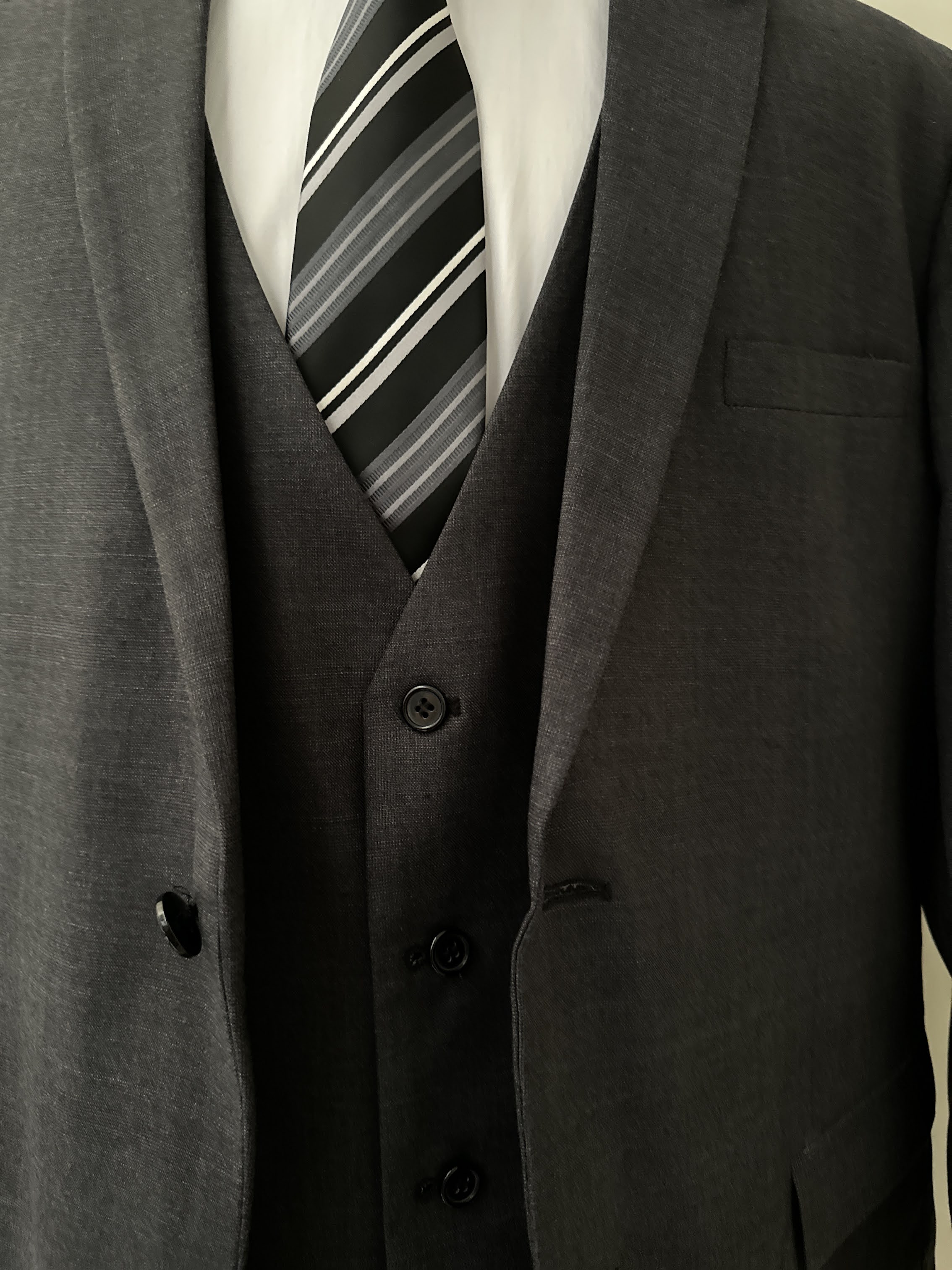 Experience the epitome of sophistication with this stunning 3 piece business suit. Crafted from premium materials, this timeless piece is your key to making a strong impression in the boardroom. Transform your look today and show the world the sharp and stylish side of you!