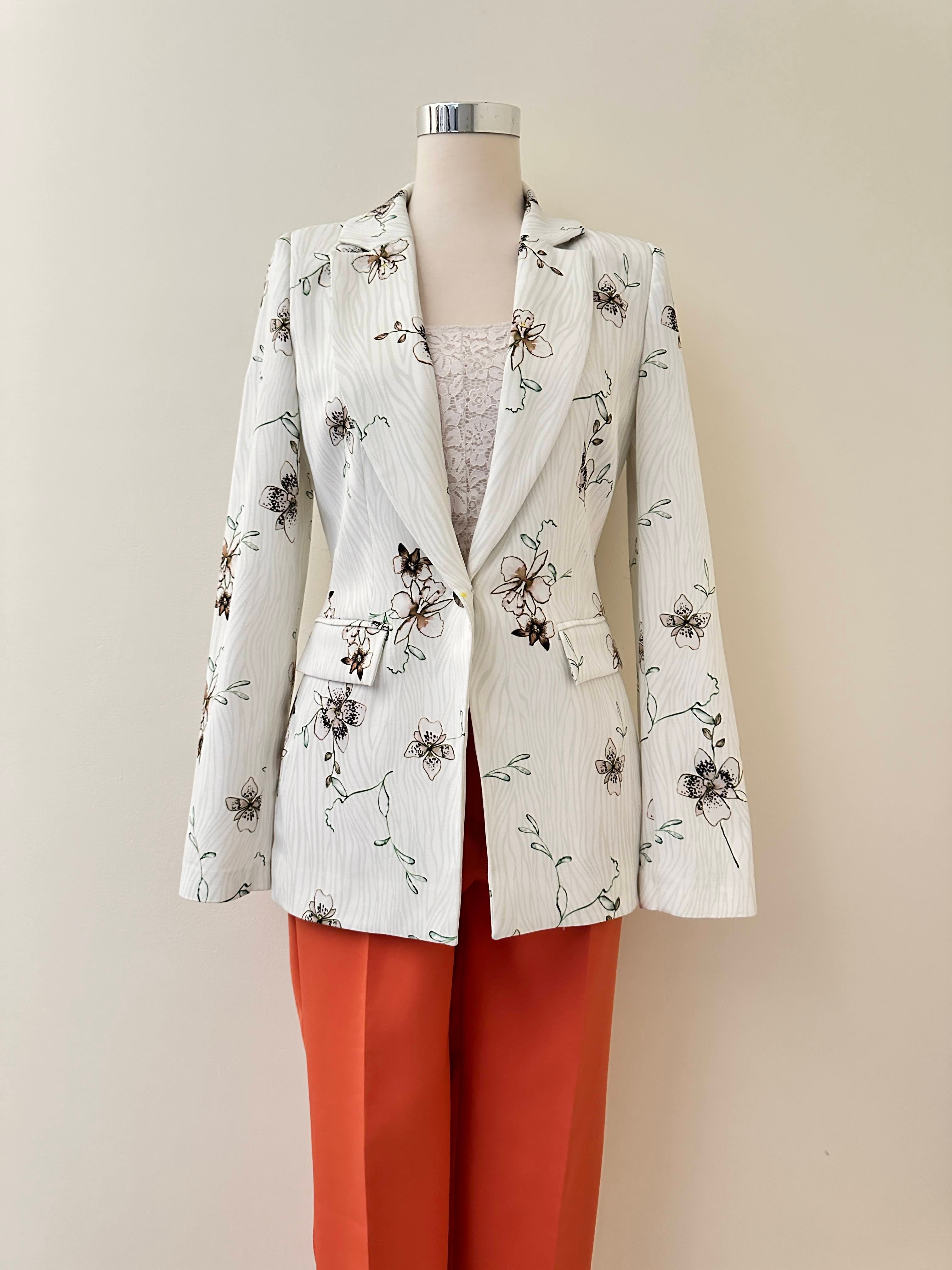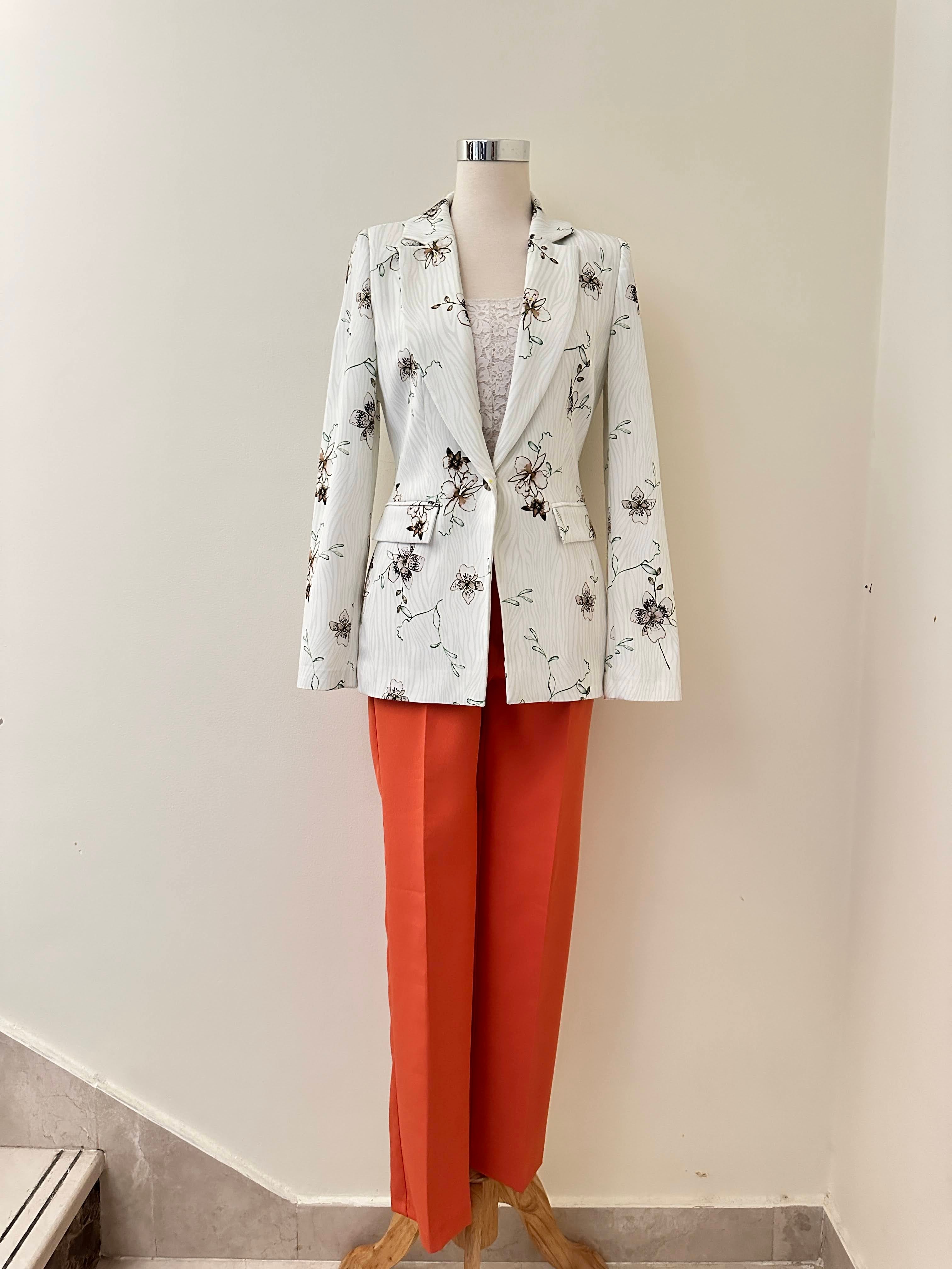 Look stylish and sophisticated in this dapper set featuring a floral patterned blazer and solid-colored trousers. With an eye-catching design, this set will make you stand out from the crowd and provide a look that speaks loudly to your sartorial sentiments.