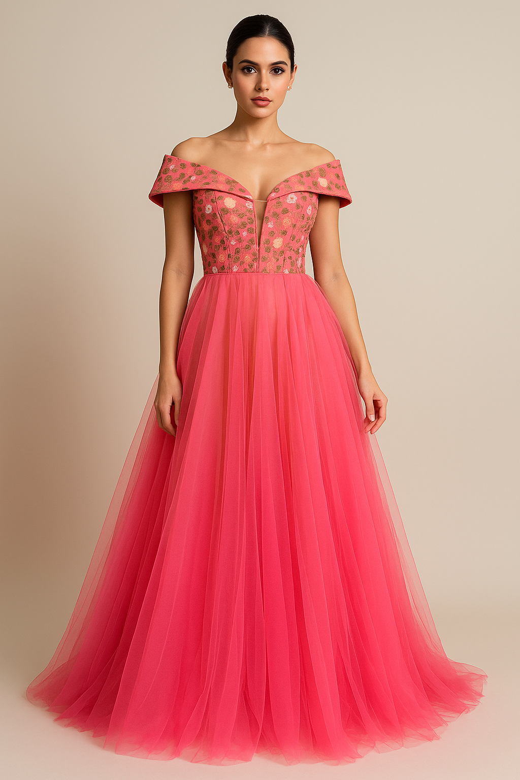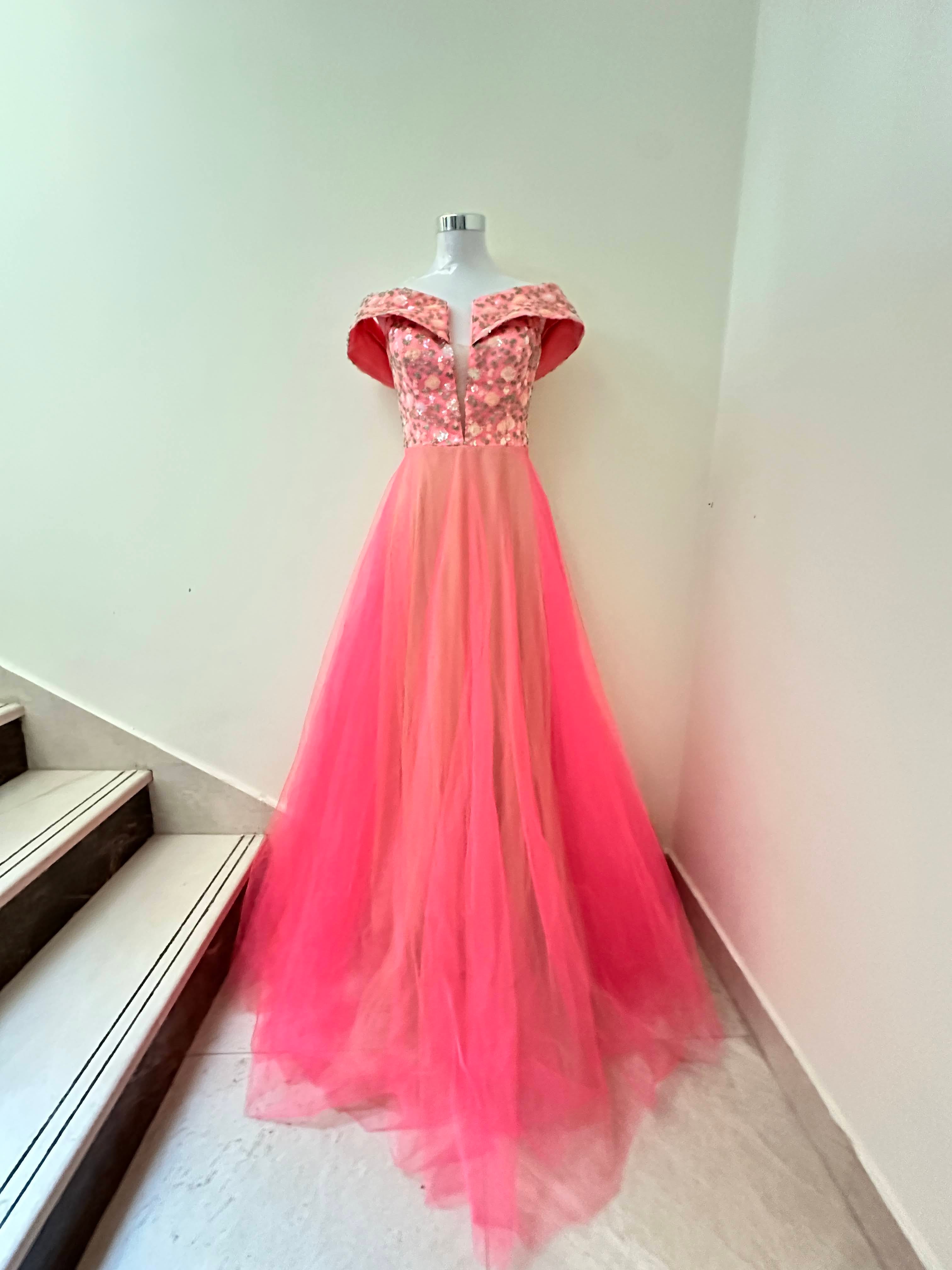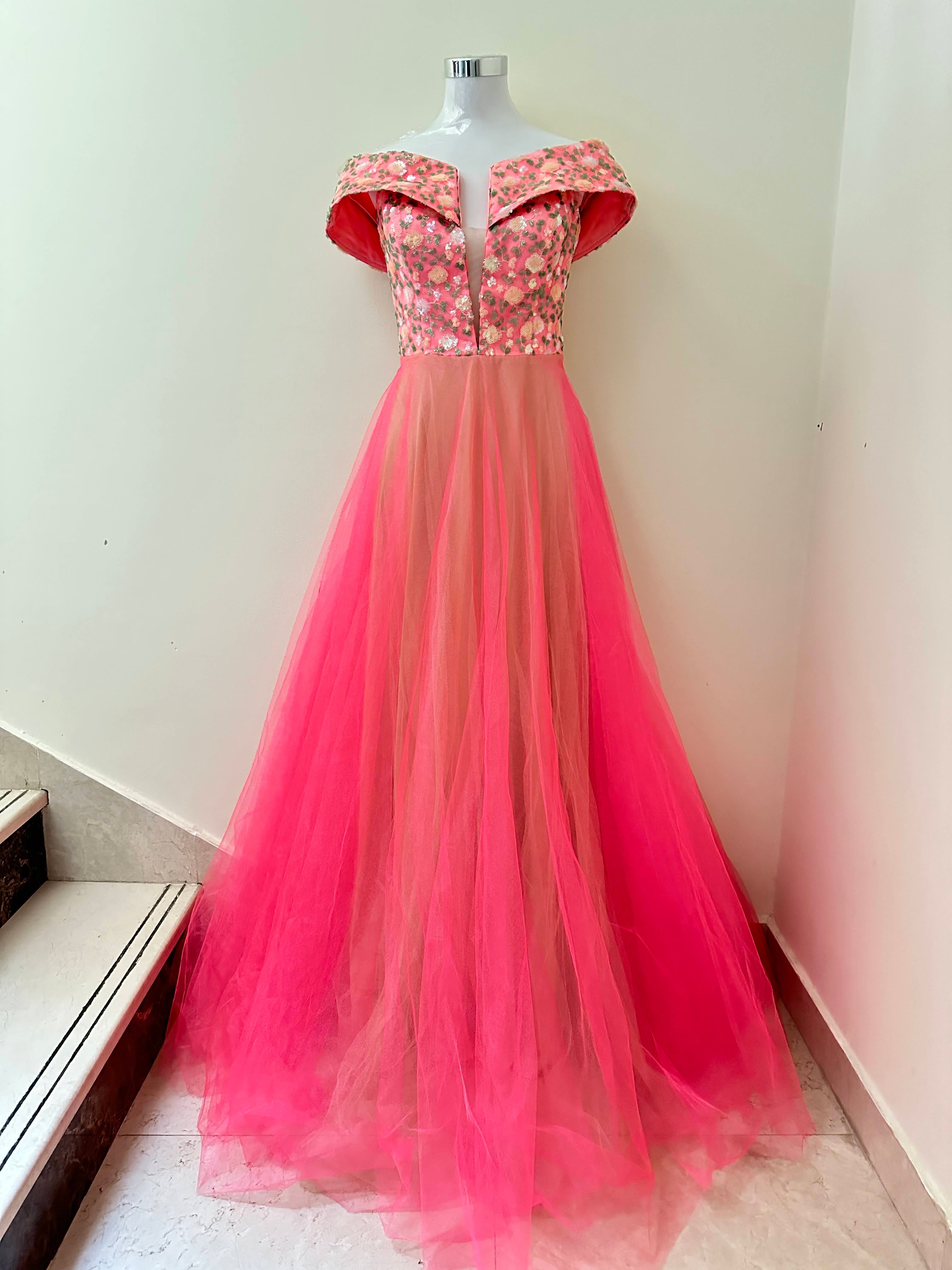 This Off Shoulder Long Dress is the perfect outfit for formal events. It is tailored with a luxurious tulle fabric and satin lining, and is further adorned with intricate embroidery work on the front and back. The result is a stunning gown with an elegant silhouette that is sure to make an unforgettable impression.