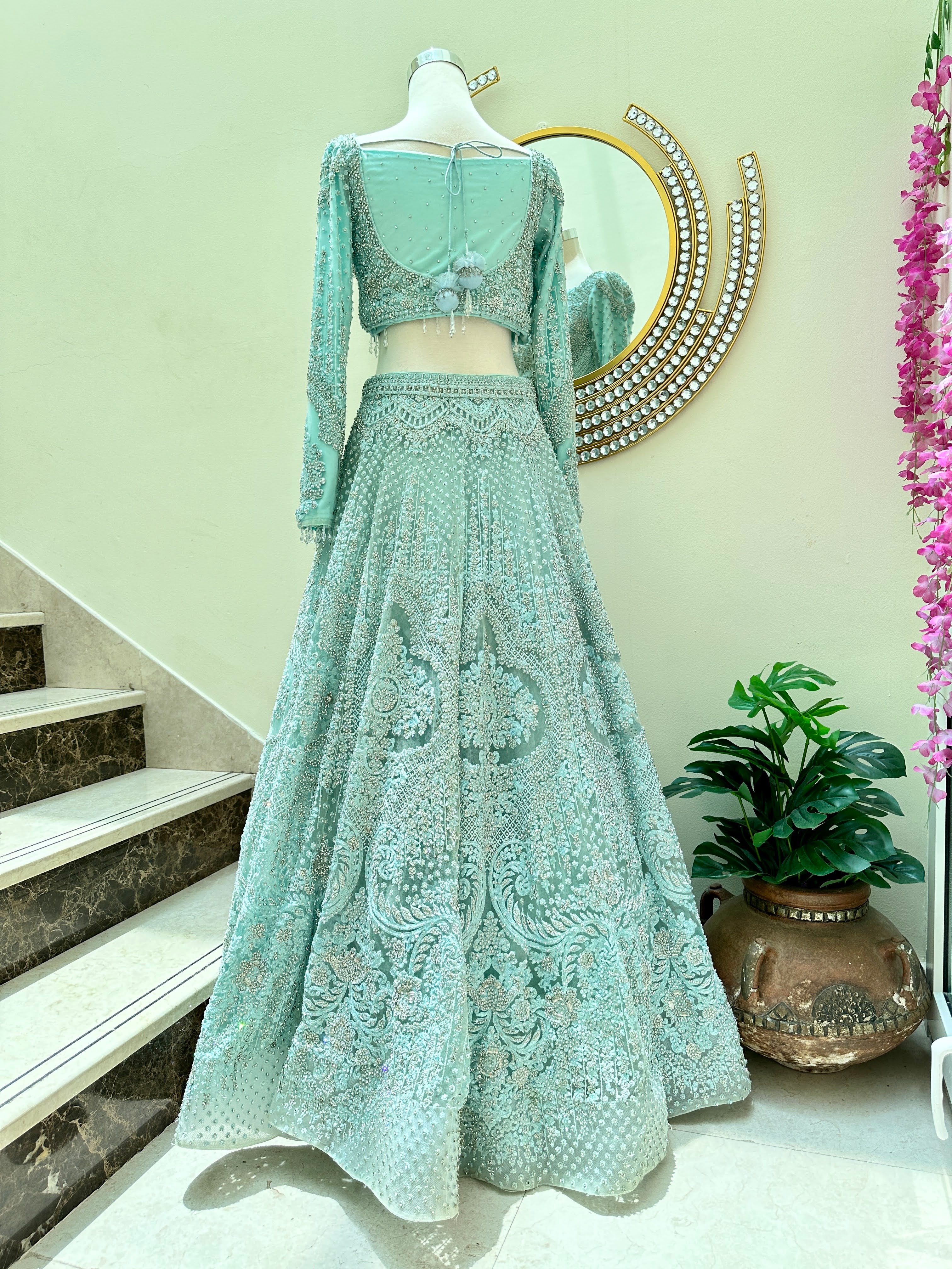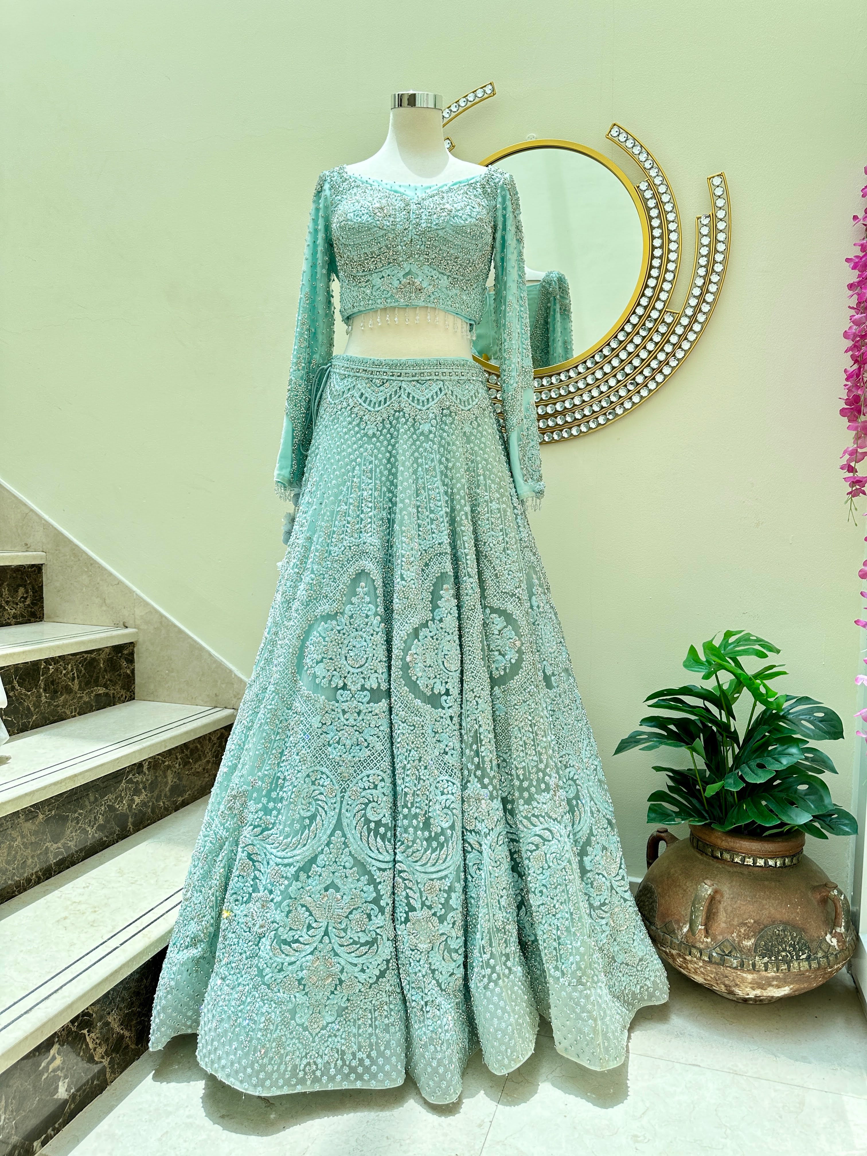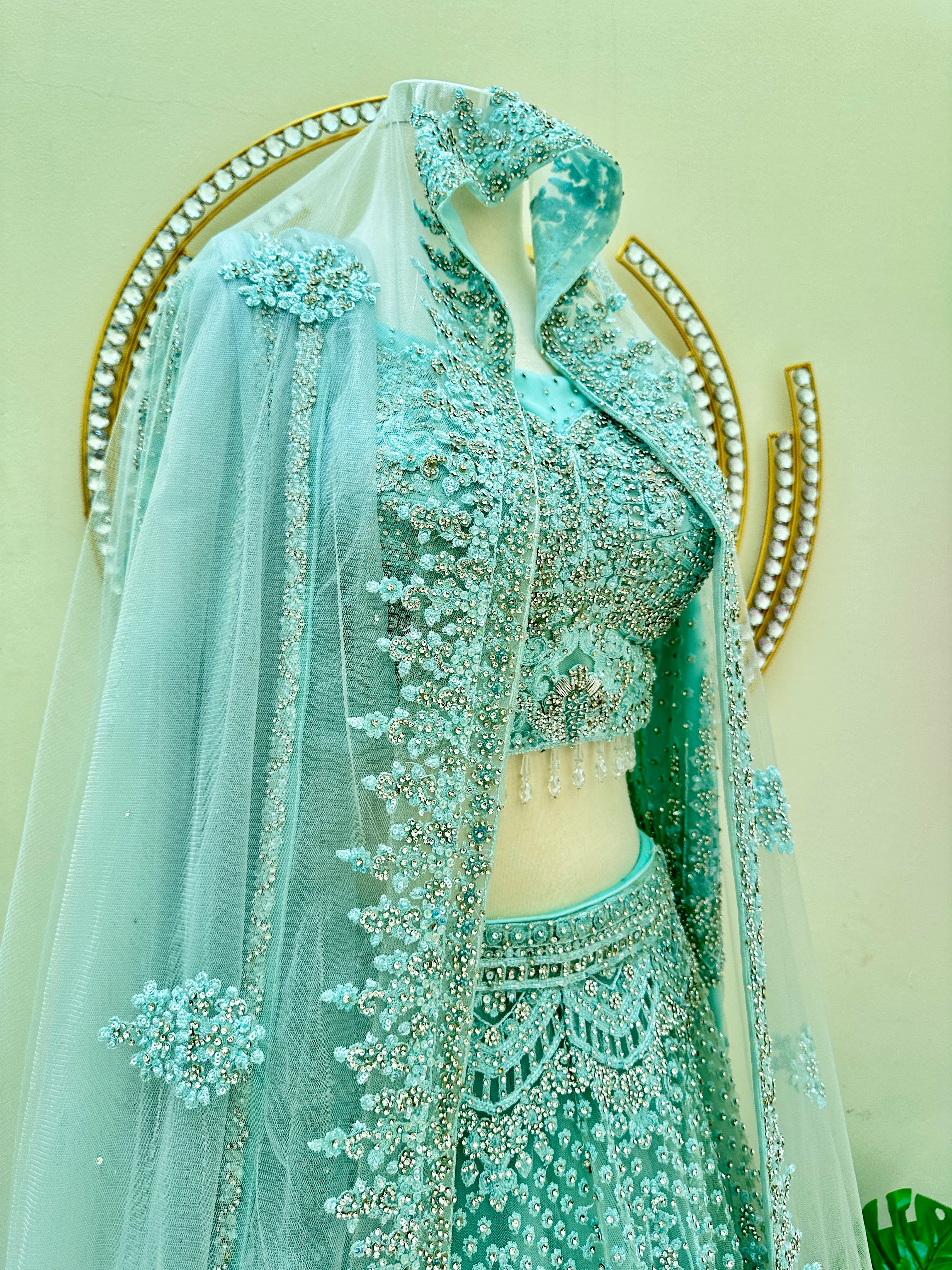 Be the most stunning bride in our Indian Bridal Lehenga. This beautiful shade of blue with heavy...