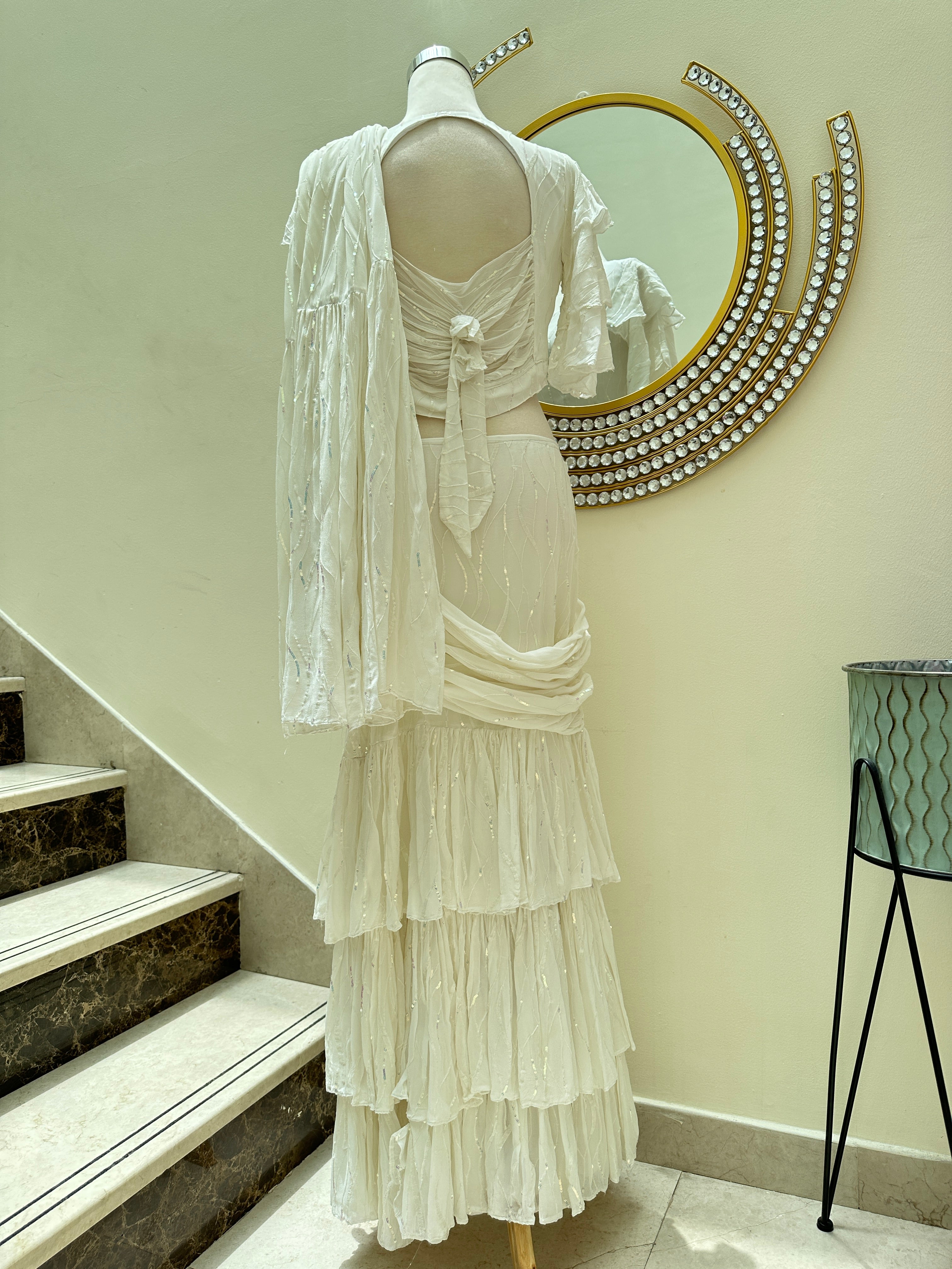 Experience luxurious style with this gorgeous Indian Saree. Crafted from soft organza fabric and embellished with sequin work, this eye-catching piece will add a glam look and a sophisticated touch to your wardrobe! Perfect for any special occasion!