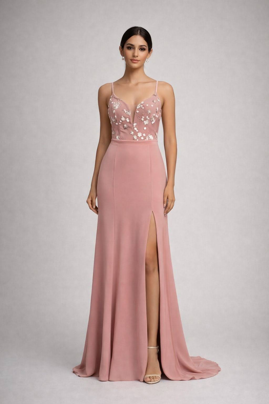 Look fashionable and on-trend with this beautiful pastel slit dress! Its light pastel color and fancy neckline will make a statement wherever you go. Add this to your wardrobe for a timeless evening look.