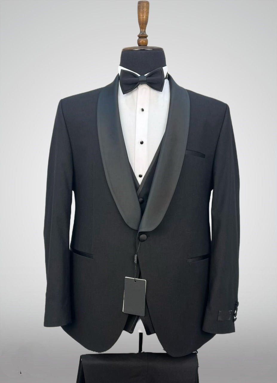 RYW-PTUX0012 Elevate your formal attire with our Plus Size Tuxedo Set. This 3-piece set features a classic black tuxedo with a stylish bow tie, perfect for any formal occasion. Stand out and feel confident in our plus size option. Upgrade your formal wear game today!