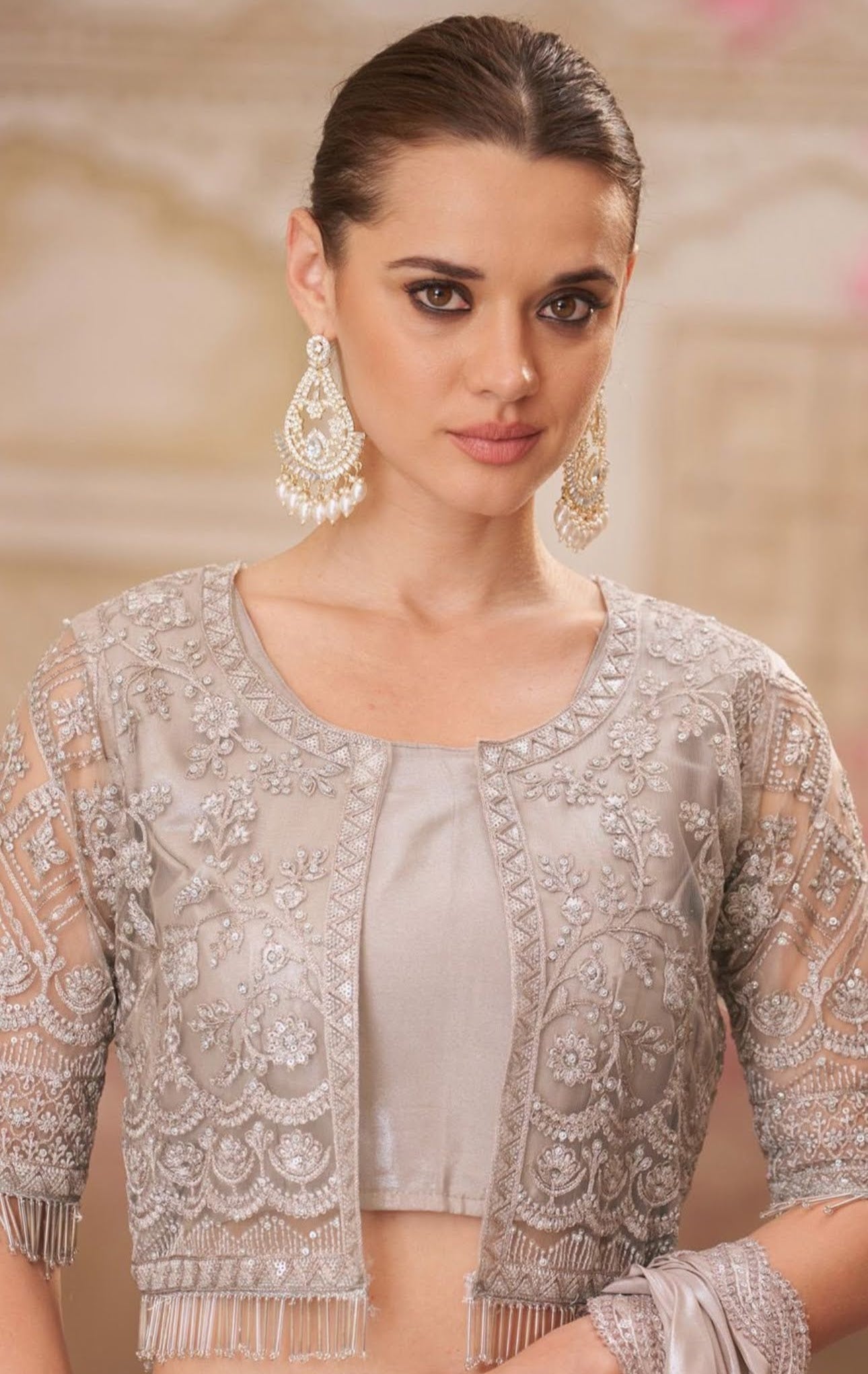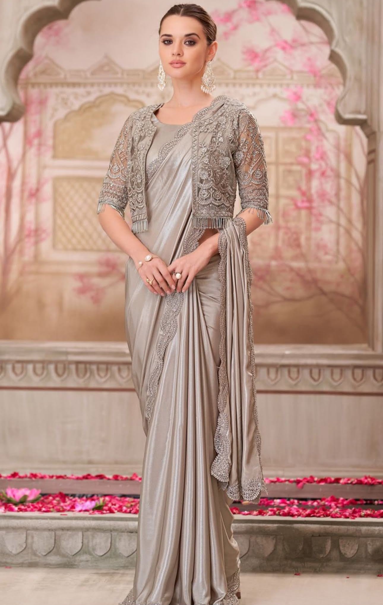 Elevate your festive and wedding wardrobe with this elegant Indian saree paired with a stylish jacket. Designed to blend tradition with contemporary charm, it offers a graceful silhouette perfect for special occasions. Experience comfort and sophistication in one ensemble that ensures you stand out with timeless beauty.