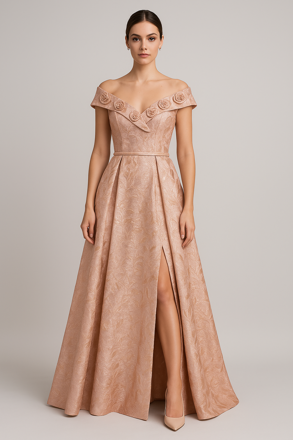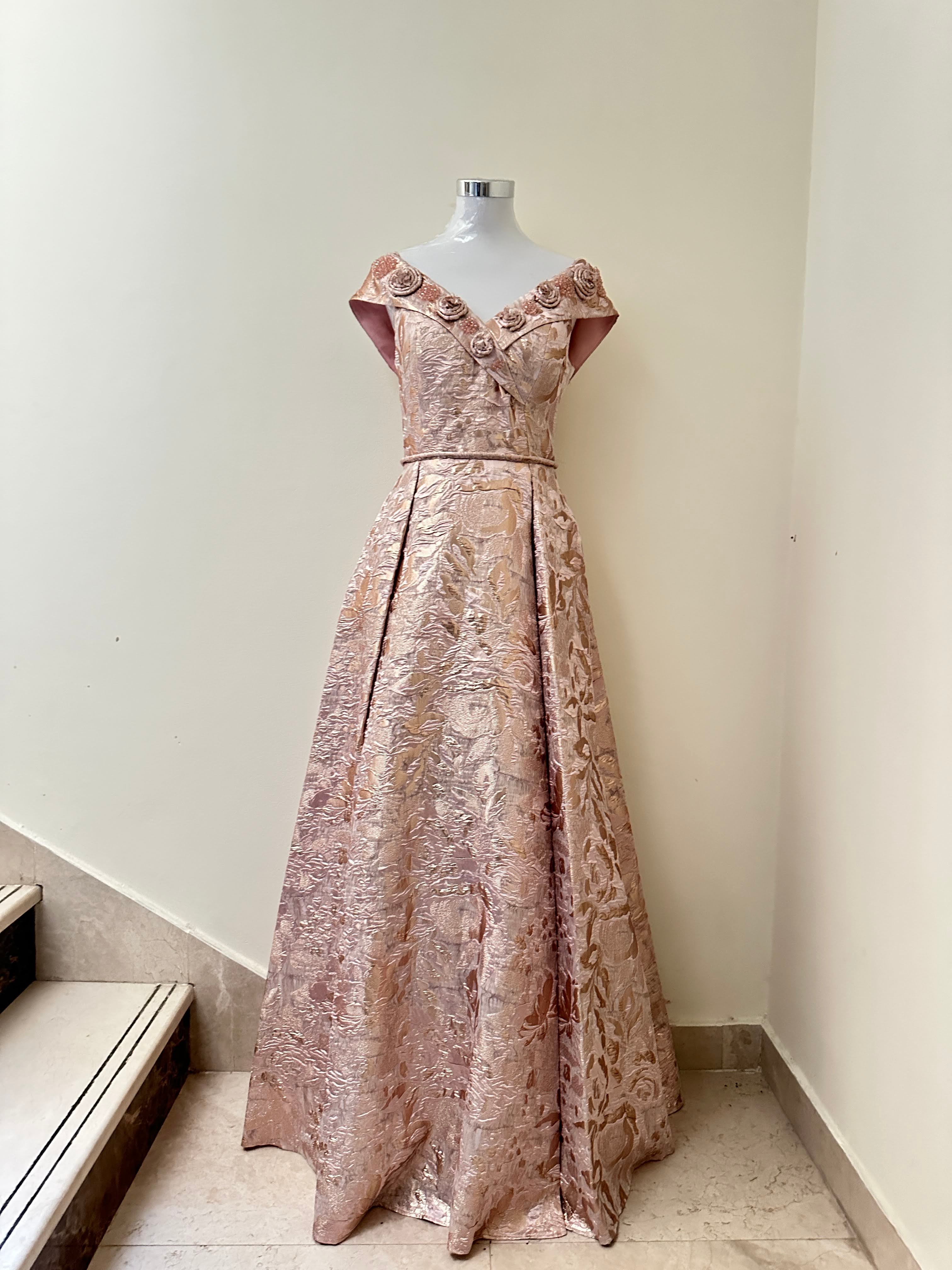 Look stunning in this unique Cold Shoulder Slit Gown, perfect for any special event! Crafted with long jacquard fabric, this party gown will have you standing out from the crowd with its chic shoulder slits and figure-flattering silhouette. You'll be the center of attention in this beautiful and stylish number!
