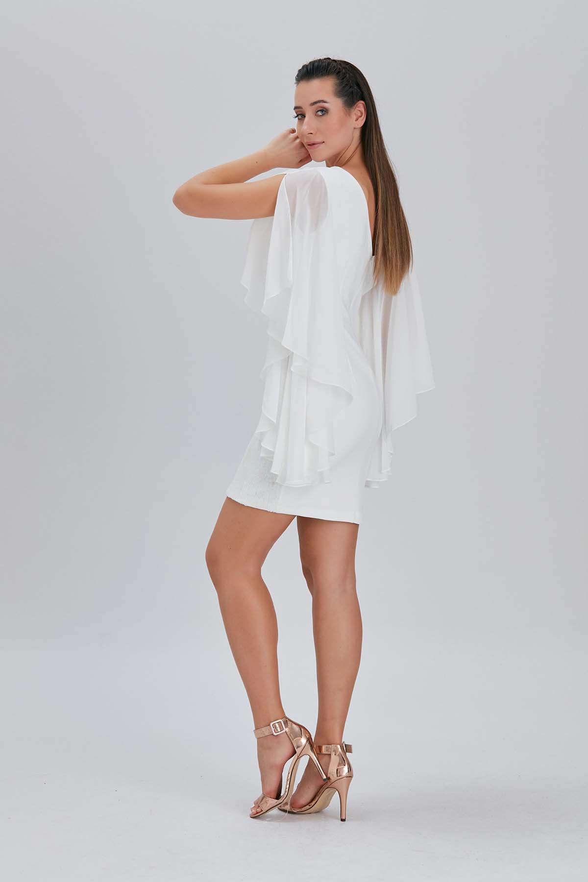Look glamorous in this white bling dress. Crafted from a sequin fabric featuring feminine ruffle sleeves and a solid-colored back, this dress will make you sparkle and shine all night long.