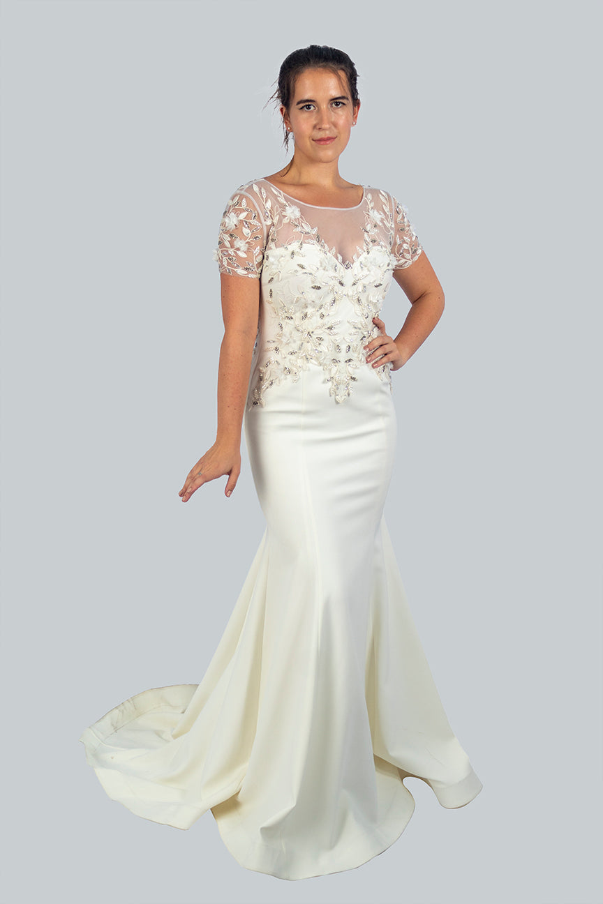 This white bodycon long dress is crafted from the finest elastane fabric, and designed with sequin handwork...