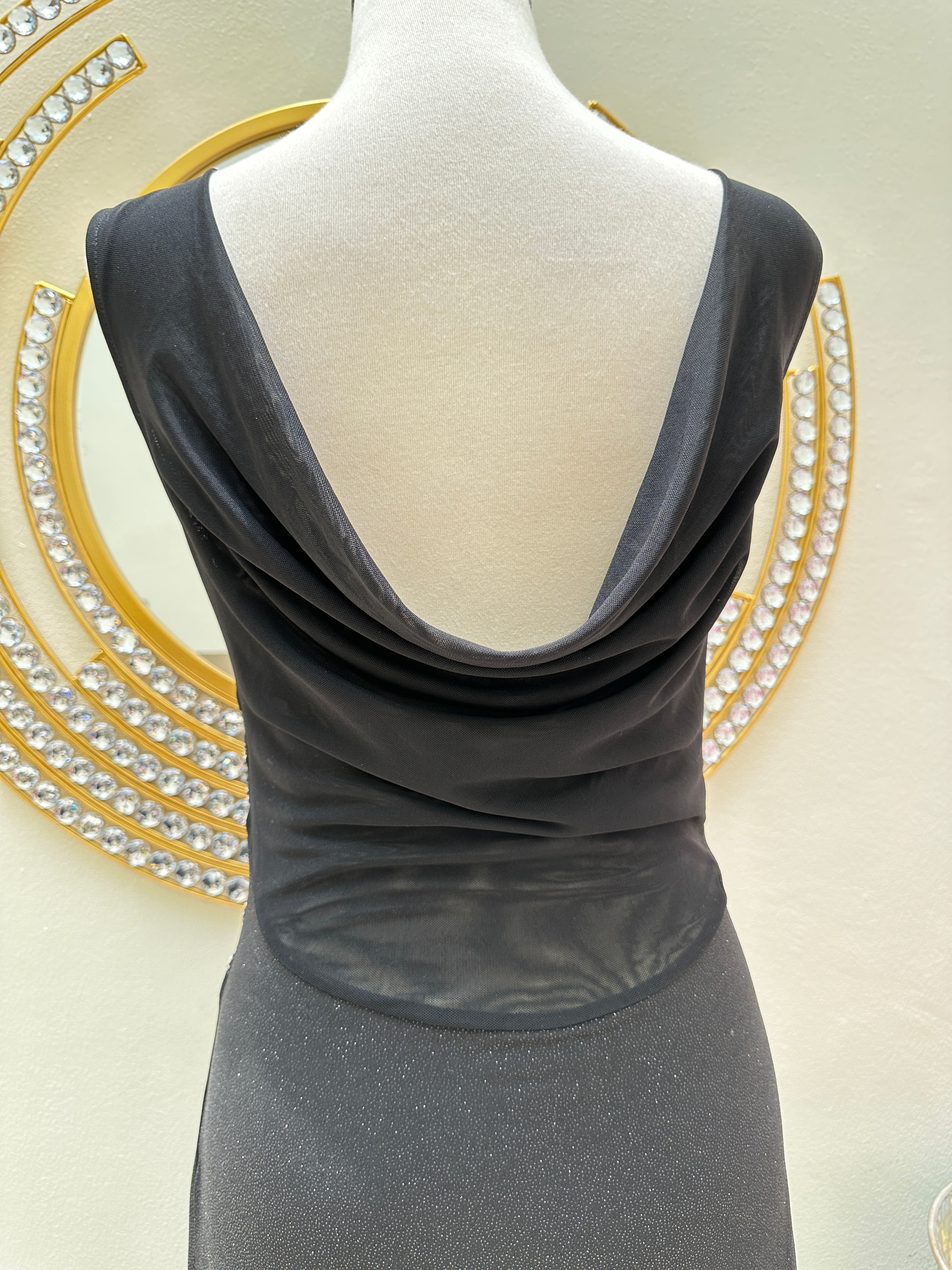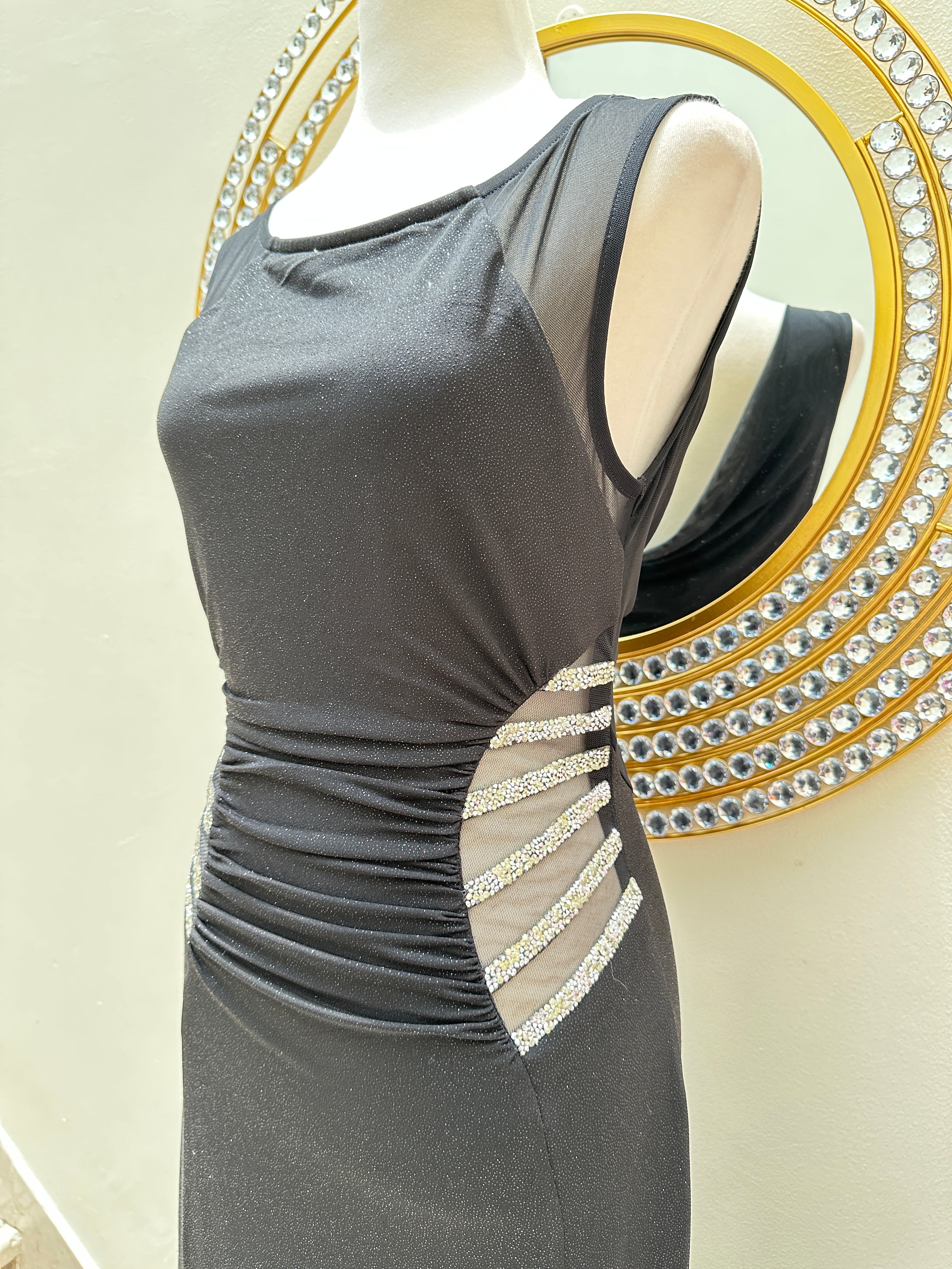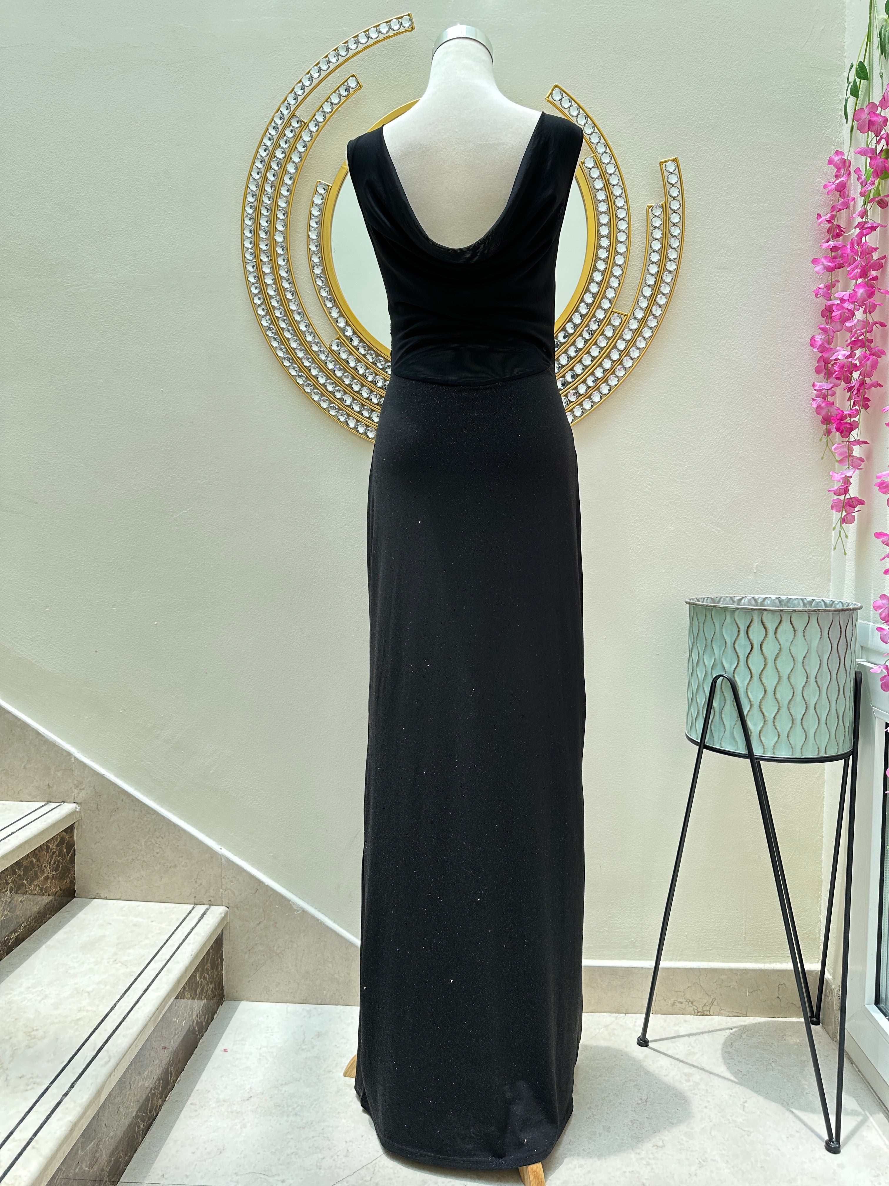 An elegant and stylish look, this black dress is sure to make you stand out. Crafted from stretchable fabric, it features stunning stud work on the waistline and a stylish cowl back neckline. Feel confident and confident and look your best. Are you ready to make a statement?