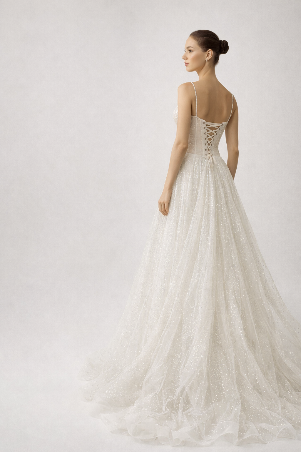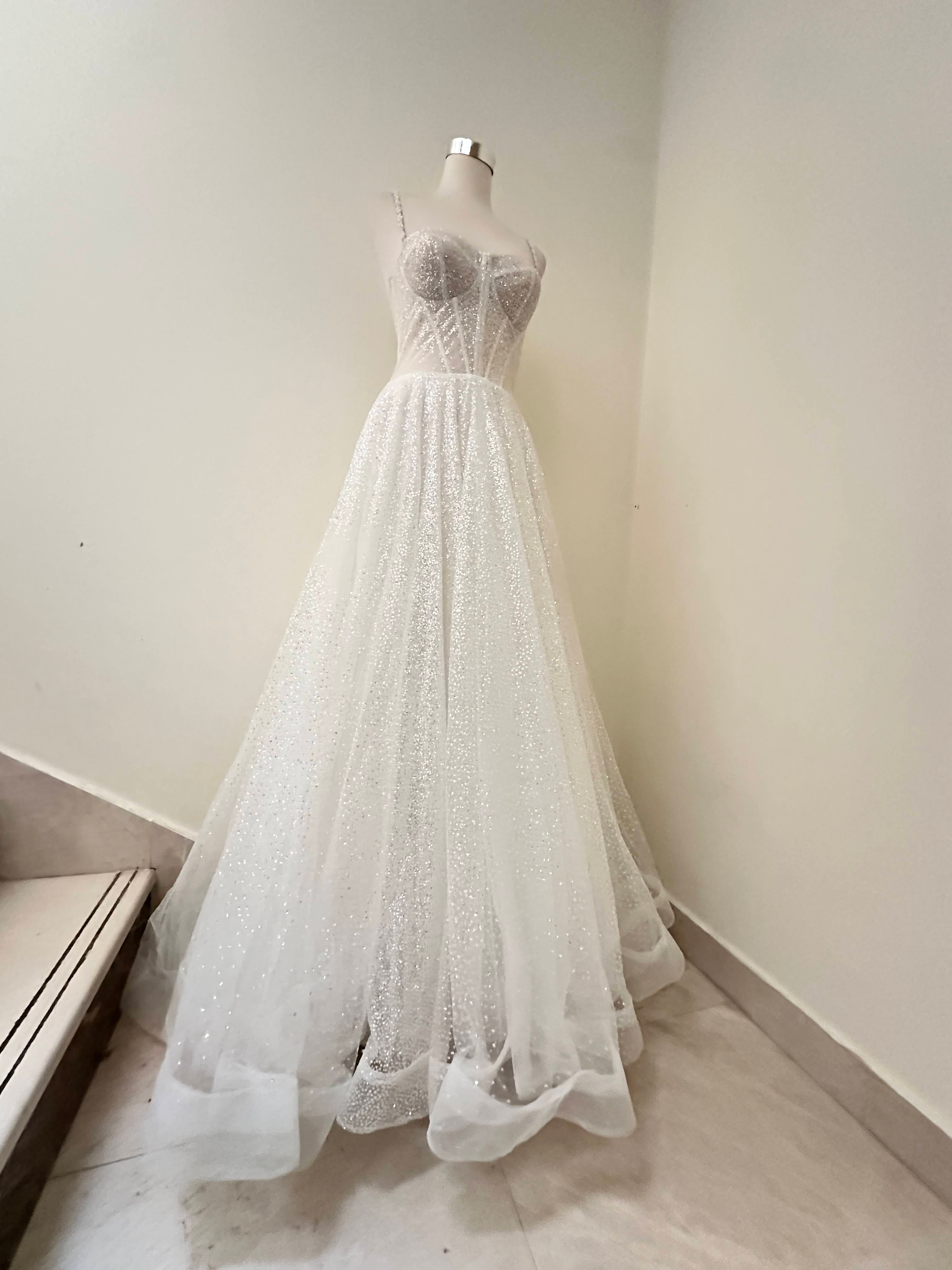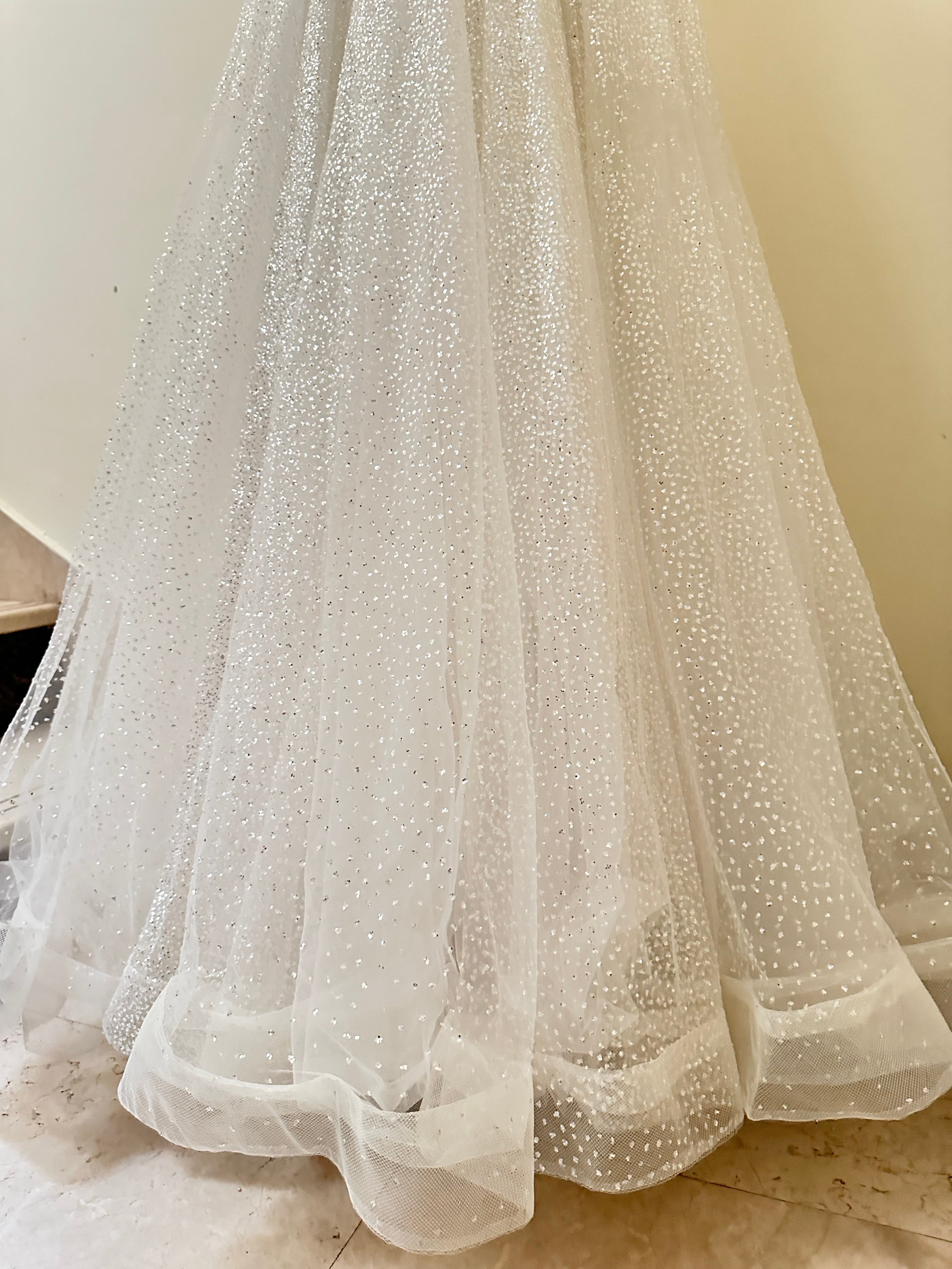 Walk down the aisle in timeless elegance with this stunning bridal gown. Crafted from delicate tulle and...